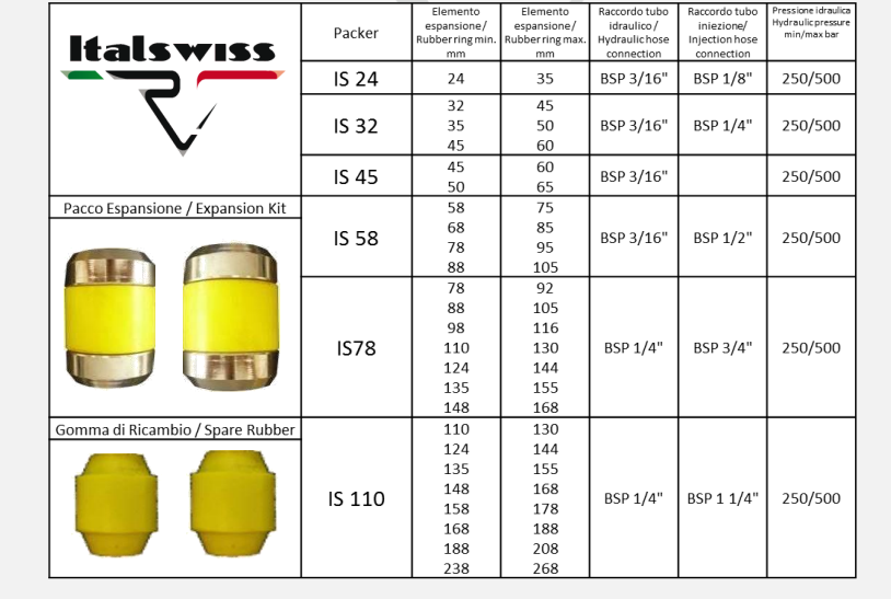 Zostały zaprojektowane w celu rozwiązania problemów podczas iniekcji cementowych. Pompa ręczna (lub elektryczna 230 V) uruchamia siłownik hydrauliczny, który ściska dwa specjalne elementy elastomerowe (gumowe), zamocowane do stalowych pierścieni o tej samej średnicy. W stanie rozciągniętym, guma optymalizuje szczelność wewnątrz mikropali i rur manszetowych. Po prostym przestawieniu kilku elementów, urządzenia mogą być używane jako paker pojedynczy lub podwójny, w zależności od potrzeb. Gumowe pierścienie w naszych uszczelniaczach są wymienne, co umożliwia stosowanie ich z rurami i mikropalami o różnych średnicach – to rozwiązanie ekonomiczne i uniwersalne.